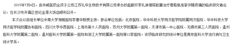 盐酸环苯扎林缓释胶囊治疗骨骼肌痉挛伴随疼痛的临床研究者会议在长沙市顺利召开